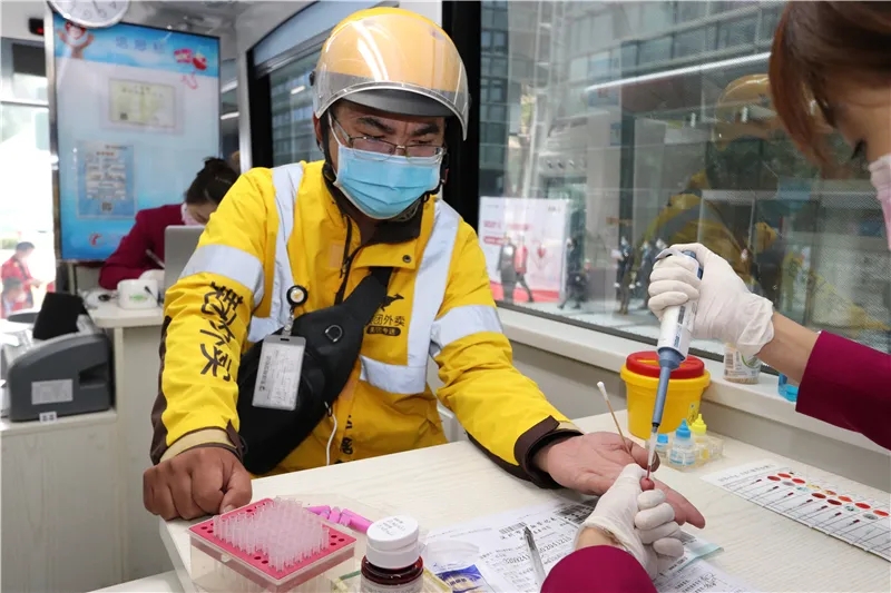 疫情還未結(jié)束,但仍然有不少街坊走出了家門過來獻(xiàn)血。其中一個外賣小哥路過,看到我們的獻(xiàn)血車,二話不說就擼起了袖子,他說,我總該做點什么。