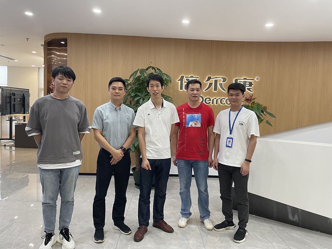 周斌(左三)和倍爾康公司研發(fā)總監(jiān)及部分工程師的合影